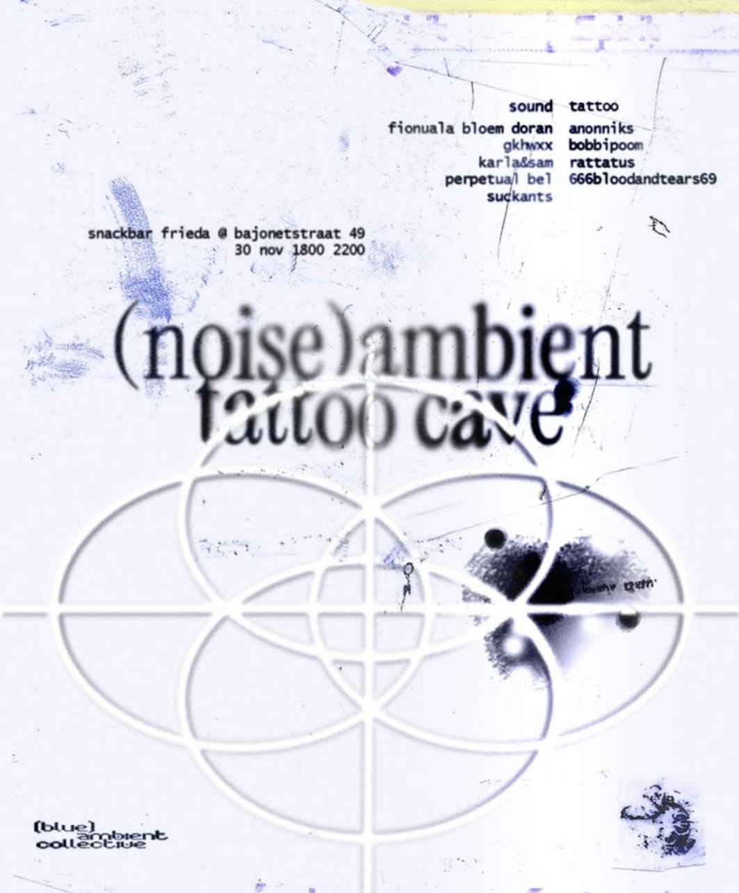 On 30/11 we invite you to Frieda - now transformed to a cozy mythical space to dissolve in to the sounds of DJs and tattoo machines. Lay in darkness on pillows dissolving to (noise)ambient soundscapes, or indulge in infesting your skin with ink spells, all are welcome to come and connect in their own way.