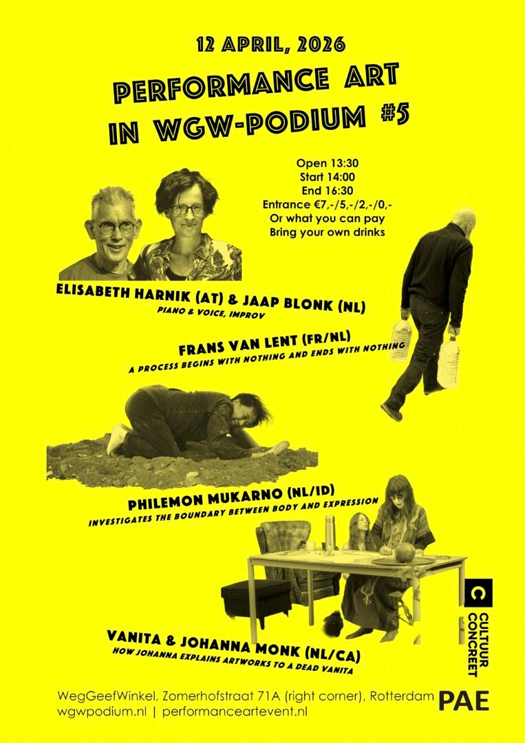 De Oostenrijkse pianiste Elisabeth Harnik geldt als ‘one of a kind’ op haar instrument: als improvisator beweegt zij zich in een elektroakoestisch geïnspireerde klankwereld, waarin ze met preparaties en geavanceerde technieken de grenzen van de piano verkent. Haar spel wordt gekenmerkt door een combinatie van fysieke expressie en introspectie, intuïtie en precisie, en leidde tot talrijke concerten en samenwerkingen met toonaangevende musici binnen de hedendaagse jazz- en improvisatiescene. Jaap Blonk uit Arnhem is vocalist, componist, dichter en beeldend kunstenaar die, na studies in wiskunde en musicologie, begin jaren ’80 de kracht en flexibiliteit van zijn stem ontdekte en sindsdien een intensief onderzoek voert naar fonetiek en de mogelijkheden van de menselijke stem. Hij ontwikkelde zich tot een unieke vocale improvisator met een krachtige podiumuitstraling, waarmee hij wereldwijd optreedt en waarbij hij, net als met zijn stem, een grote flexibiliteit bereikt met live-elektronica.