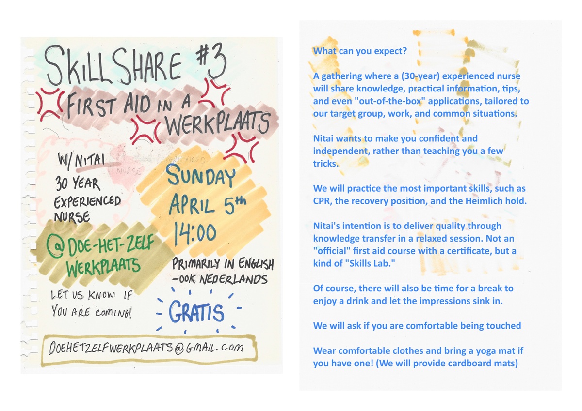 Nitai's intention is to deliver quality through knowledge transfer in a relaxed session. Not an "official" first aid course with a certificate, but a kind of "Skills Lab."